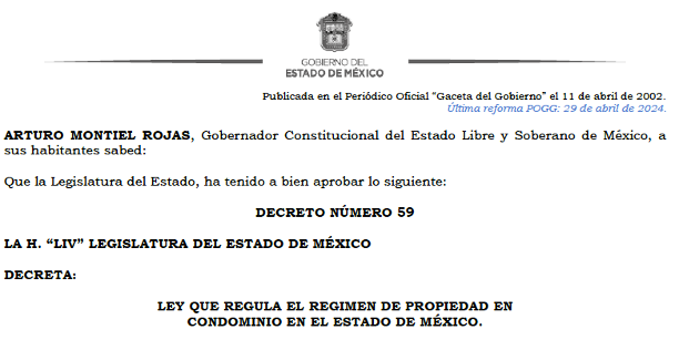 El régimen de propiedad en condominio en el Estado de México está regulado por la LEY QUE REGULA EL REGIMEN DE PROPIEDAD EN CONDOMINIO EN EL ESTADO DE MÉXICO. Esta ley tiene como objetivo principal establecer las normas y procedimientos para la creación, organización, funcionamiento y extinción de los condominios, además de regular los derechos y obligaciones de los propietarios y ocupantes de las unidades privativas y las áreas comunes.
